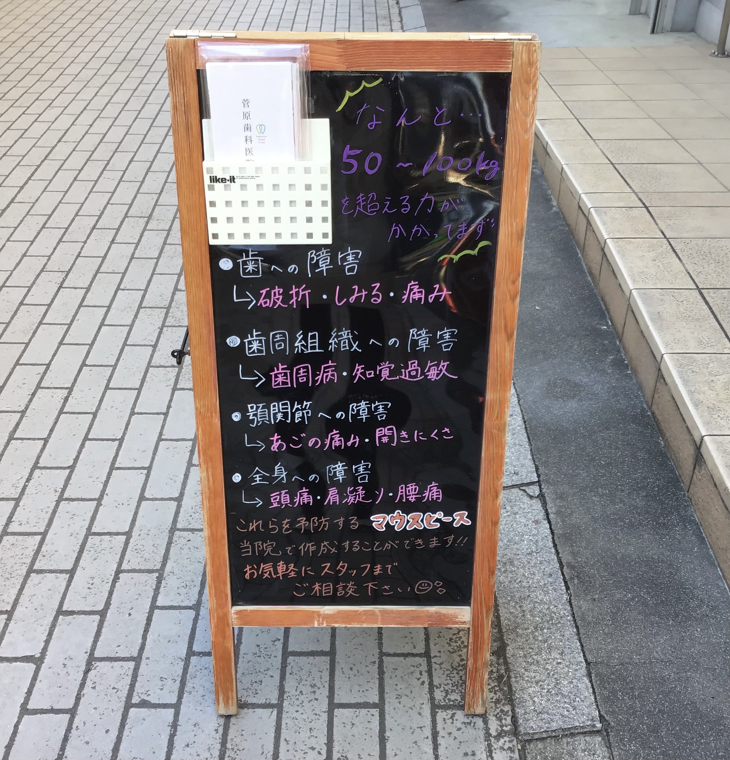 今月の看板は『歯の天敵 歯ぎしり・くいしばりにご用心』です。