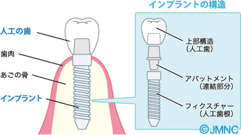 インプラントは一般的に3つの部位から構成されています。